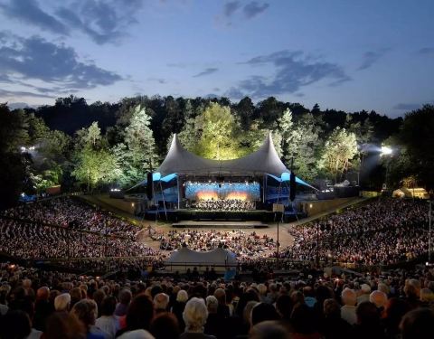 森林剧场据说原先是一片森林,后来逐渐形成了一块大约30米深的盆地,然后盆地被改造成一座露天剧场,可以容纳两万余名观众露天赏乐。真的很浪漫,看着星空看着表演,很悠哉!