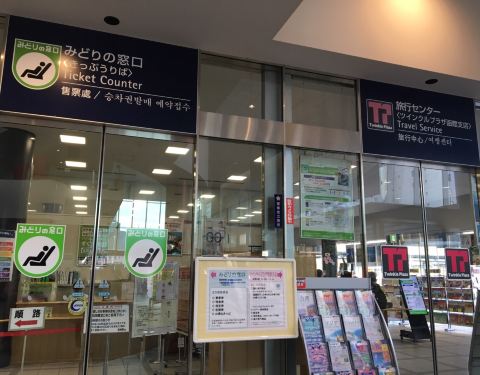 不會太擁擠,標示很清晰,就在JR明亮的車站里!遊客服務中心的服務相當的好,主要體現在詢問櫃檯數目多,態度親切有耐心,指引清晰有條理.雖然車站內的商店不多,但是你想要找的東西卻都能找到!