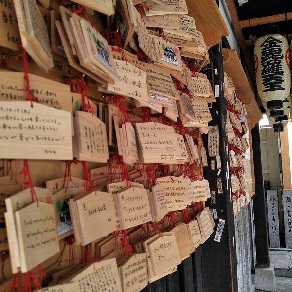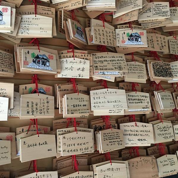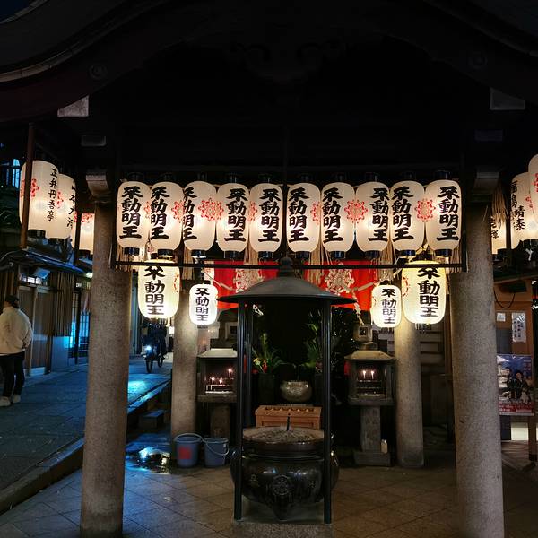 这里的街道比较小,寺庙也是小小的,给人很静谧的感觉。据说当年大阪遭受空袭时整座寺庙都曾被烧毁,只残留下了这座不动尊象,再加上这里的祈愿据说一直十分灵验,所以我们还是决定一睹为快。寺庙里有很多许愿牌,上面写满了各种文字的愿望,可见不仅是本地人,就连外地的游客也非常喜欢来这里进行祈祷。寺庙的房顶上挂满了灯笼,白天看不出美丽,但我猜到了晚上一定非常的漂亮。