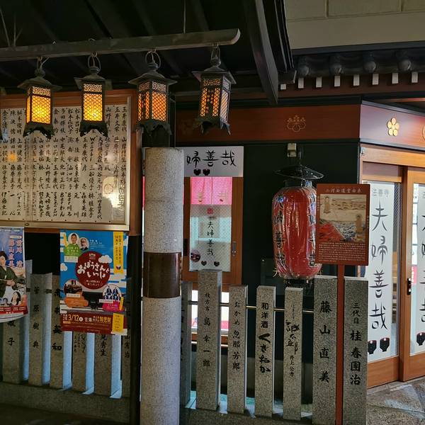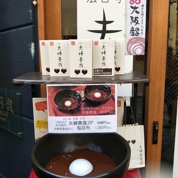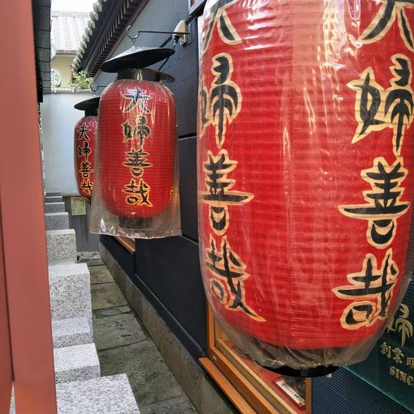 寺庙的旁边有个很有名的“夫妇善哉”,这是一家红豆店,据说这里可以吃到道地的大纳言红豆,可惜我们去的那天它没有开门,我们只好对着那红彤彤的大灯笼猜测其中的滋味了。 展开
