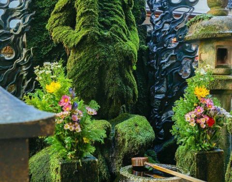 【主要特点】水挂不动尊:水挂不动尊的名称由来是因为这尊佛像是由天然的树木制成,佛身生满了树叶和青苔。前来参拜的人们在祈愿之前一般会先将水浇在佛像身上,这也是一个非常有特色的祈愿仪式。【法善寺】