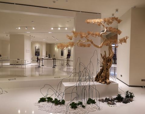 (书画) 剩下的就是很多的书画基本上都是用玻璃放好,还有旁边的一些山水画也是相当不错的水墨画风格挺飘逸的。 (绿景) 绿色植物的景观也是相当的多,这也是最受女孩子欢迎的合照地点,其实这边的人并不是特别的多,所以如果喜欢拍这种绿色植物的话,这边也是一个比较好的地方。