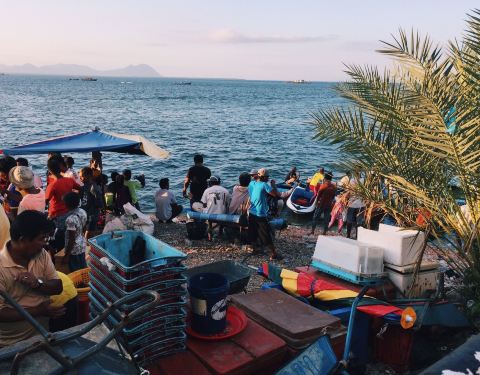 沙巴的渔村可以说是一个天然形成的海鲜交易市场。这里每天的清晨和傍晚都会有鱼市, 渔民们将一天打捞的鱼登岸,在渔村的码头上就开始售卖,非常的新鲜,而且价格实惠,每天都会有许多的小贩和游客前来光顾。