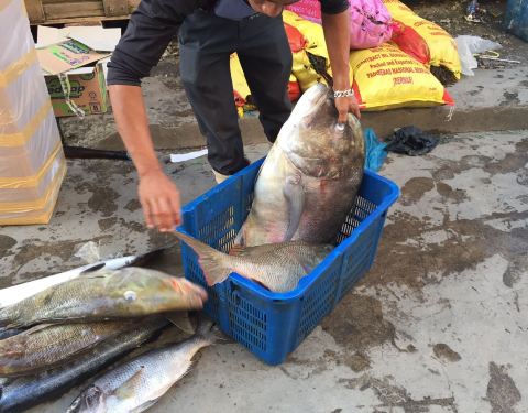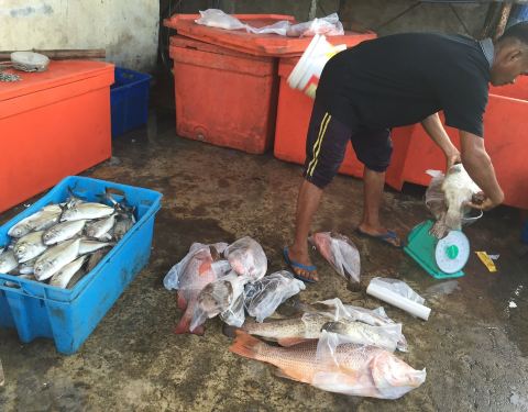 沙巴的渔村可以说是一个天然形成的海鲜交易市场