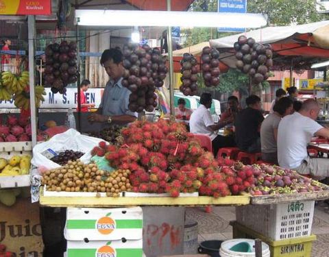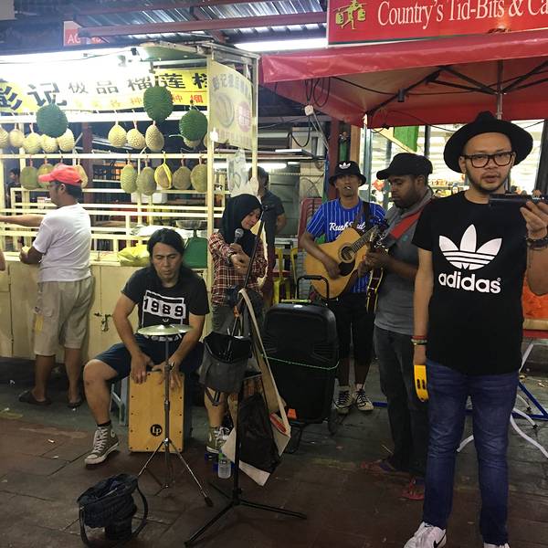 不过这个唱的挺好听的,虽然中文不准但是那个调还是挺在的...我们一不小心就站了半个小时...吃的还可以试下烧鸡翼,强仔蚝煎,还有鱼头米粉,味道都不错!还有街口的水果摊,大堆人围着吃榴莲,也可以试试,只是这里榴莲有点偏贵我们开了个苏丹王,30马币一个,味道却是有点苦的....