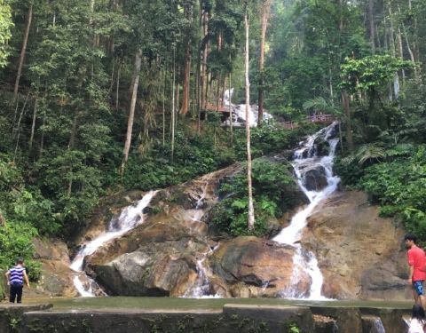 去甘清雨林瀑布的时候,沿途有七个瀑布,当山路越来越高时,需要抓着旁边的绳索,穿着舒适的衣服和鞋子,因为地面很滑。距离吉隆坡开车只要四十分钟,森林里面游客扔的垃圾很多。