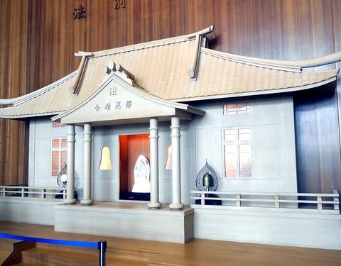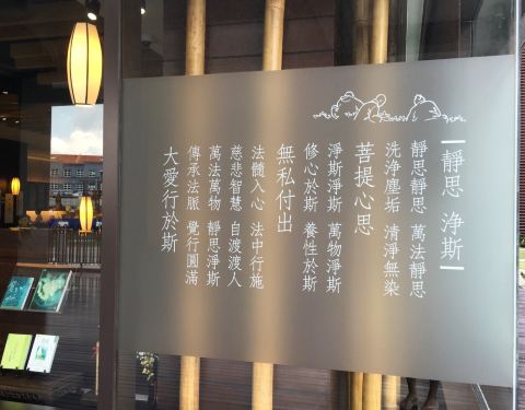 静思堂门前有一个很漂亮的花园,被打理得非常好,进入里面也有很漂亮的而且有意义的装饰,天花板位置的设计很特别,进入这里参观注意安静