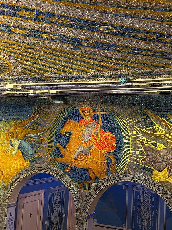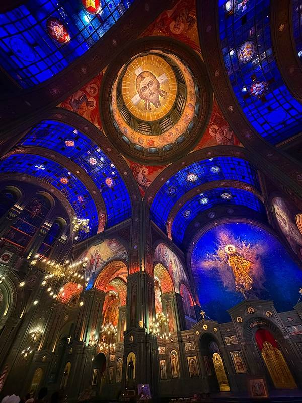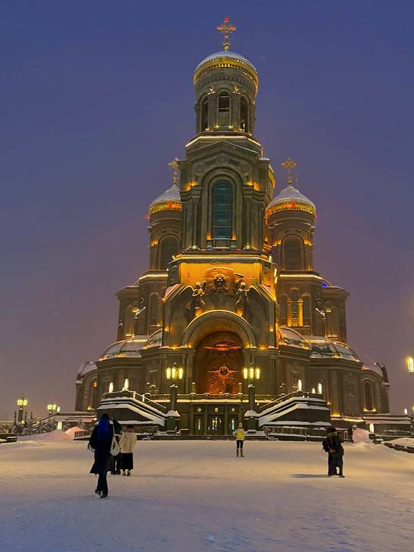 莫斯科武装力量大教堂,矗立于爱国者公园的钢铁圣殿,是战斗民族刻入骨髓的硬核美学表达。为纪念卫国战争胜利75周年而建,它将军事荣耀与东正信仰熔于一炉,每一处细节皆藏历史密码:75米钟楼、14.18米小穹顶,精准对应胜利时刻与战争日夜。 最震撼的是脚下的地板,由二战缴获的德军坦克熔铸而成,踏足其上,便是将侵略者的武器踩于脚下,尽显胜利荣光。金顶如战盔,壁画融天使与战甲,迷彩外立面冷冽庄严,这座教堂不只是宗教圣地,更是用钢铁与信仰铸就的历史丰碑,凝萃着俄罗斯对和平的守护与对英雄的致敬。