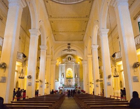 ...较小巧的一个教堂了,但是也还算精致,甚至他那后面的鹅黄色的那一部分,我甚至觉得有南洋的一些特色相对来说算是比较小巧的一个教堂了,但是也还算精致,甚至他那后面的鹅黄色的那一部分,我甚至觉得有南洋的一些特色。教堂坐落在港口旁边。