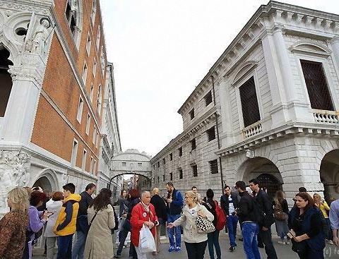 也是一个制高点,可以拍到运河对岸的景色,还有连接总督府和监狱的叹息桥。另外你得做好心理准备,人非常多