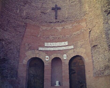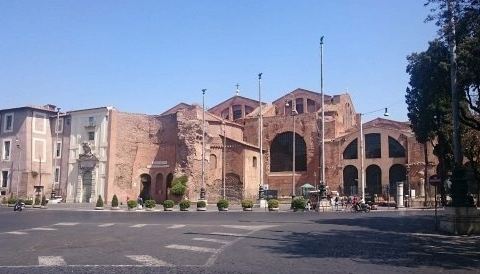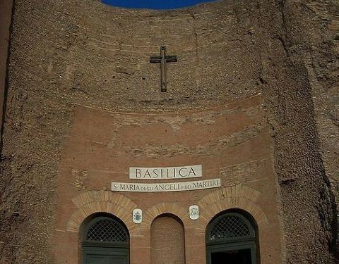 最早修建于公元300年前后,是罗马帝国最奢华的皇家浴场。后来随着帝国的灭亡,也变成了一堆废墟。十六世纪在废墟上由米开朗基洛主持修建了现在看到的座教堂,名字叫天使的圣玛利亚教堂。