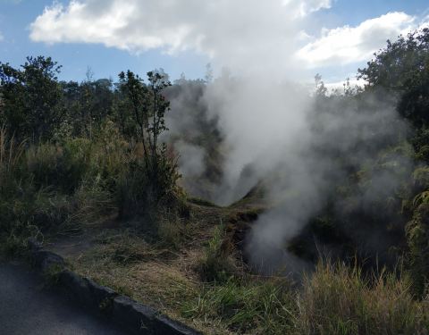 我最喜欢的就是去基拉韦厄徒步,你可以从热带雨林一直往上走,然后穿越火山口。你还可以去瑟斯顿熔岩隧道参观,那里真的挺酷的,我们也很喜欢岩石山的雕刻。