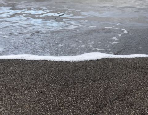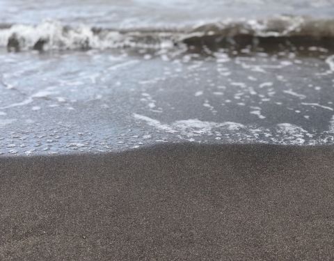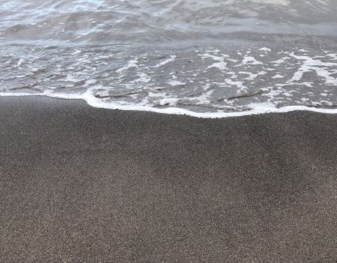 这里的大海很美,沙滩是黑色的。很多老外看这里冲浪。