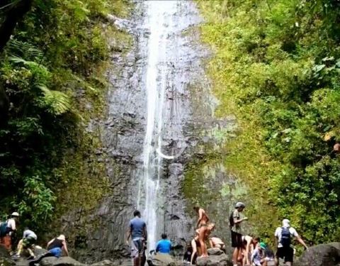 穿山越岭,步行在原始森林里去参观马诺阿瀑布,风景迷人的大瀑布,山上流下來的水很清凉穿山越岭,步行在原始森林里去参观马诺阿瀑布,风景迷人的大瀑布,山上流下來的水很清凉。这里聚集了旅客在这里戏水,拍摄是好地方。体验环境优美的情景,感受大自然很舒适。