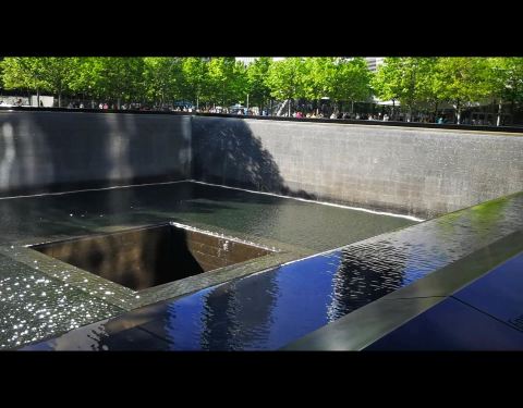 这个反思池是在9/11的双子塔的遗址上建的,属于9/11纪念馆的一部分,反思池的周边刻的遇难者的名字这个反思池是在9/11的双子塔的遗址上建的,属于9/11纪念馆的一部分,反思池的周边刻的遇难者的名字,经常遇难者的亲朋好友前来献花。