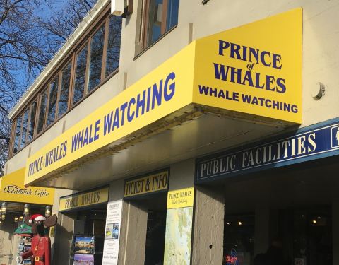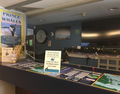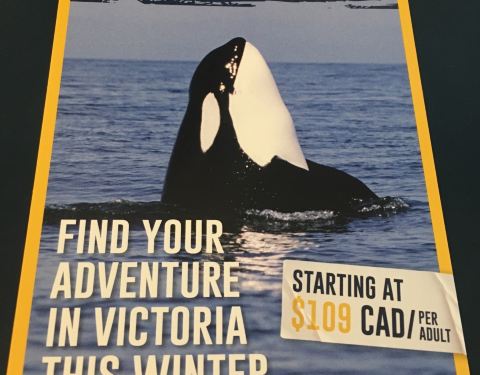 Prince of Whales赏鲸活动的宣传,从去往Victoria的渡轮就开始了。Inner Harbour的岸边,有赏鲸公司的办公地点,起价109刀。而出海赏鲸的船,就停泊在Inner Harbour。