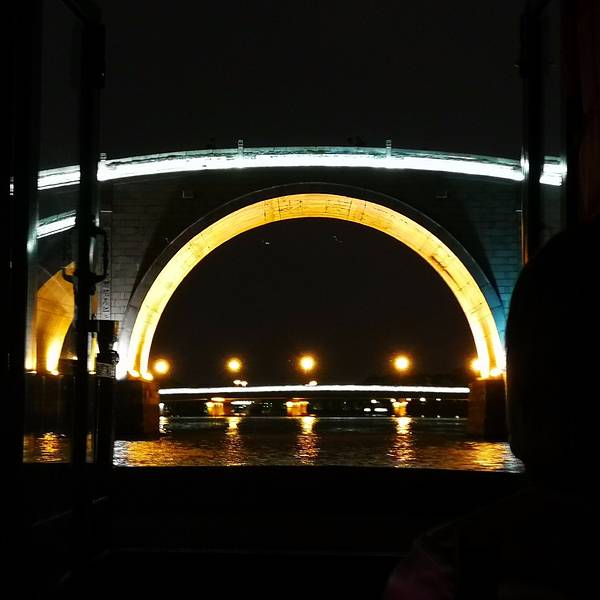 在这里可以坐游船夜游这个苏州河还不错。