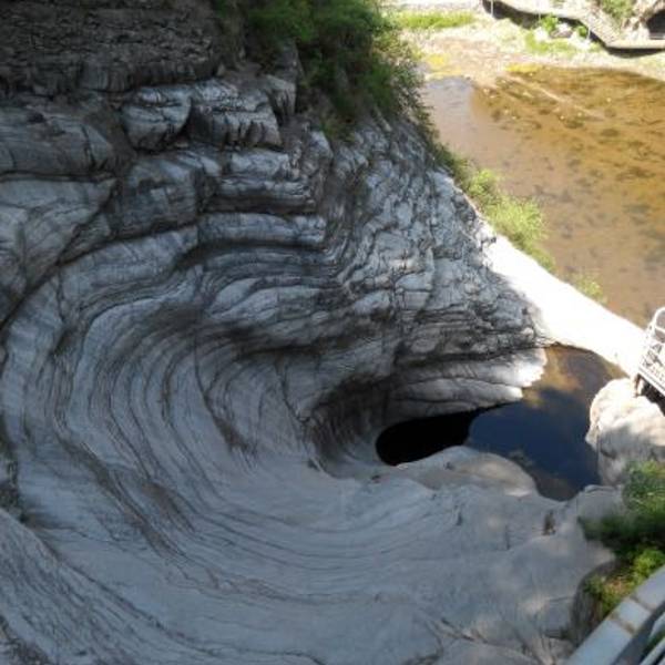 房山区蒲洼乡芦子水村,有一形状奇异的漏斗形奇坑,坑底常年有水,被称为天旋。每当雨季,都会有大量的洪水倾泻,不断将坚硬的岩石冲击,形成了一个带有螺旋型痕迹的巨大石窝-“天旋”。大石窝旁边还有许多小的石窝,经地质学家分析,“天旋”形成的时间至少上亿年。