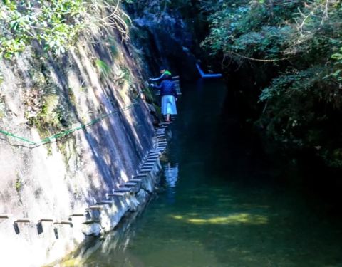 石门山峡谷离李坑江湾不远,就顺道一并游玩,谷内绿植丰富,清爽阴凉,飞瀑流泉、峡谷幽深,有绳梯吊...