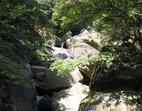 山清水秀的婺源,石门山峡谷离李坑江湾不远,就顺道一并游玩,谷内绿植丰富,清爽阴凉,飞瀑流泉、峡谷幽深,有绳梯吊索,挺适合团队建设活动的,海拔不高,路也不算难走,是个老少皆宜的亲近自然的地方。