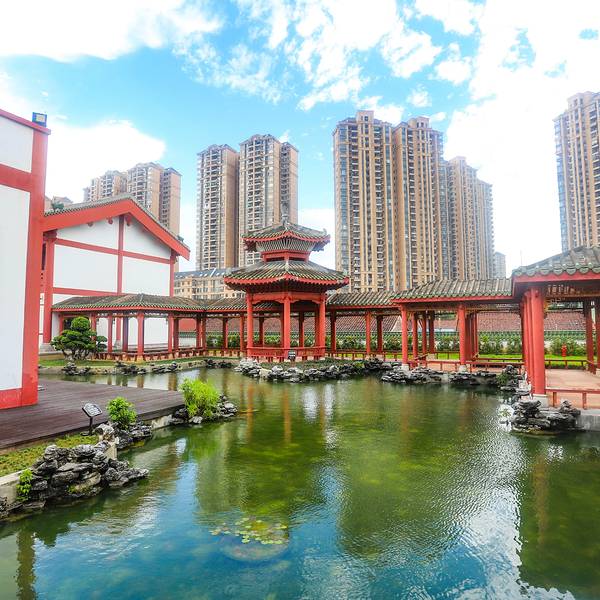 就在迁建的包公祠前,濒临西江,地理位置得天独厚,环境优美就在迁建的包公祠前,濒临西江,地理位置得天独厚,环境优美。廊架、树木散布其间,是市民休闲活动好地方,文化园随处可见褒扬包拯的楹联。