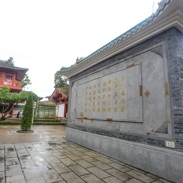 尤其是听闻包公曾经在这里做了三年的官以后,就更加想到为纪念他而建的包公文化园去游览一番了,因此...说起包公,雄鹰真是闻名久矣。不仅仅是小时候常看有关包青天的电视剧,而且雄鹰小时候生活的城市也毗邻开封,就连父母谈恋爱的时候,每逢冬季都常去开封大相国寺、龙亭赏菊。所以这次前往广东肇庆,尤其是听闻包...说起包公,雄鹰真是闻名久矣。不仅仅是小时候常看有关包青天的电视剧,而且雄鹰小时候生活的城市也毗邻开封,就连父母谈恋爱的时候,每逢冬季都常去开封大相国寺、龙亭赏菊。所以这次前往广东肇庆,尤其是听闻包公曾经在这里做了三年的官以后,就更加想到为纪念他而建的包公文化园去游览一番了,因此也就有了这篇文章,稍后雄鹰会为大家介绍一番包公和肇庆包公文化园的故事。根据历史记载,庆历元年的时候,北宋名臣包拯调任端州知府(也就是现在的肇庆)。因为端州盛产砚台,之前的知府趁着进贡的机会,趁机敛取比贡数还要多几十倍的砚台,来赠送给当时的当朝权贵。唯有包拯这任知府,命令工匠制造的砚台仅仅满足贡数,据说他在任满一年没拿一方砚台回家。所以就是在这段时间里,他的政绩斐然,官声卓著,“青天”美名也是从端州任上开始的。驱车抵达包公文化园以后,将车停在景区免费的停车场里,便开始了这段旅行。由于刚下过雨的缘故,整个景区的游人不多,加上满地的落叶,让氛围显得略有些清冷。雄鹰与同行的两位朋友兴致勃勃的穿过文化广场,来到了包公文化园的主建筑包公祠部分,经过安检进入景区。这才发现景区居然是免费开放的,还真是少有的良心景区。据雄鹰了解,现如今的包公祠所处的位置刚好是当年包拯所设端州驿站所在地。以牌坊、山门、大殿、东西配殿、钟楼、鼓楼为主体建筑,布局严谨、古朴大方,颇有岭南古建筑风格。而在正殿里,还有一座包公金身坐像,东西配殿绘包公政绩及民间传奇壁画,并塑宋代名将岳飞、丞相文天祥等人的塑像。通过游览这座祠堂,绝对可以充分的了解到包公在端州期间为官清廉,大办实事、造福端州,离任肇庆时不持一砚归的故事。值得一提的是,整个包公文化园里陈列了实物近1400件(套),包括480件(套)文物类实物。
