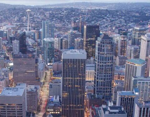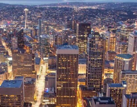 位于73楼的观赏台欣赏西雅图的美丽市景,从尽黄昏到夜晚在这里度过,白天到入夜四周围的建筑物,街道和灯饰另我陶醉。