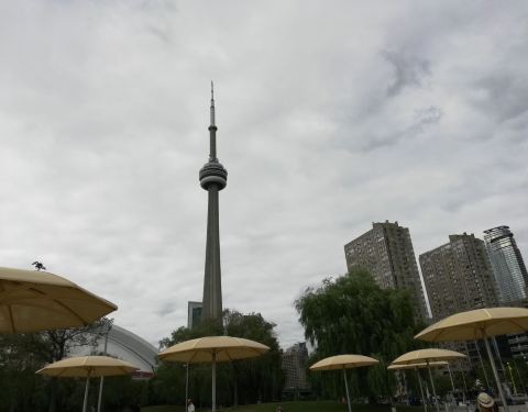 去电视塔,把车停在附近的停车场,附近的火车头广场逛了逛,过马路往海边走就到了这个港口,有很多游艇停在这里,也有一些小船,我们就在附近拍了拍照,没有坐船上多伦多岛,晚上要去商场逛大鹅,时间不够了,下次再说吧。
