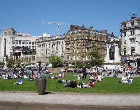 我觉得更像是一个广场,这个不是伦敦的那个皮卡迪利广场,这个地方是曼彻斯特一个中心地带的广场,也...这个地方说是公园,我觉得更像是一个广场,这个不是伦敦的那个皮卡迪利广场,这个地方是曼彻斯特一个中心地带的广场,也是交通的枢纽。