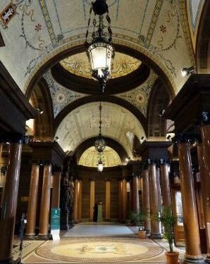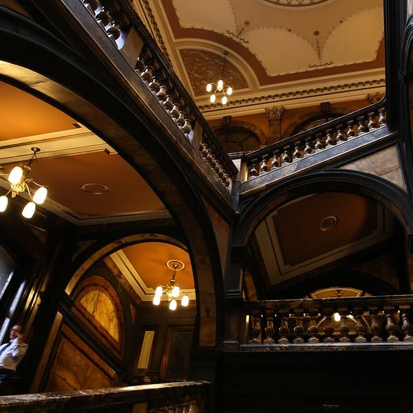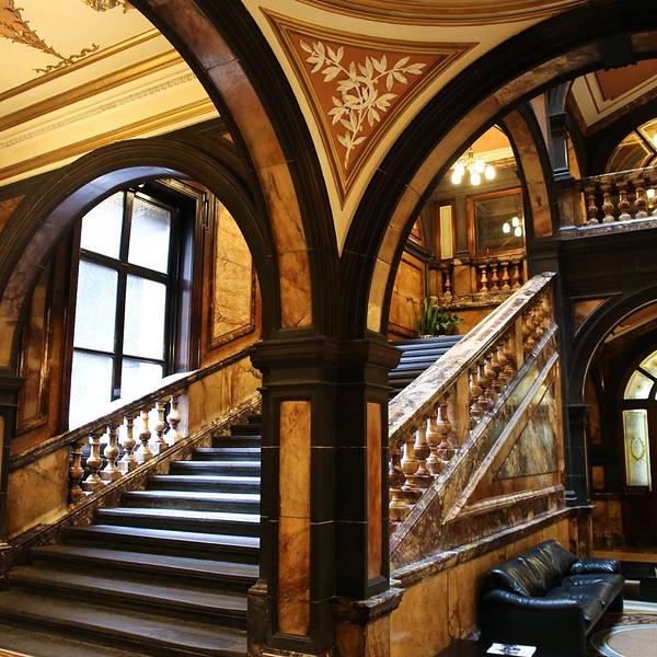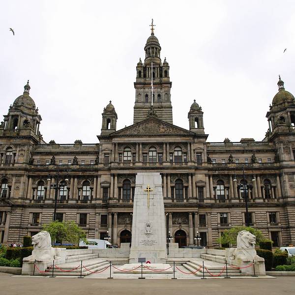 格拉斯哥市政厅(City Chambers)位于乔治广场的东侧。市政厅的整体风格为意大利文艺复兴时期的建筑风格,无论是外观或者内庭都非常壮观有气势。精心设计的大理石台阶、彩绘玻璃装饰的天花板、华丽的吊灯,每一处细节都彰显着这座大英帝国第二大城市昔日的财富和荣耀。市政厅在周一至周五每天的10:30和14:30提供两次免费导览服务,跟随导游你可以了解到更多格拉斯哥的历史。