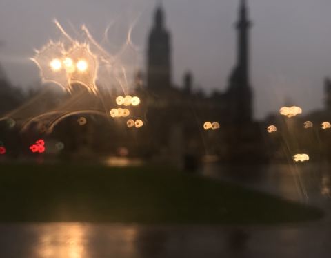 苏格兰高地三天的时间,报了一个当地的华人小车团。好久没有参过团,这三天的跟团游体验特别好。司机兼导游是08年通过大学2+2项目来到爱丁堡的,又在英国念了硕士之后定居英国了。人风趣幽默,懂的也超级多,问什么英国的风土人情都知道。团里其他六个人也都是年轻人,一路上聊天轻松愉快,还都是各种清华、早稻田、爱丁堡大学的学霸,我和多先生两个国内普通211毕业生觉得简直参到就是赚到了。为了少带行李,我们看了天气预报高地气温比爱丁堡还低一些,在爱丁堡就冻得够呛,我们就把薄衣服都寄存在了酒店,带着最厚的衣服出发去高地。高地第一天还挺冷,第二第三天竟然赶上了高地这两年最热的几天,每天一身汗,真真失算。早知如此,何必再三磨酒店前台想把一件行李寄存三天。 爱丁堡出发高地团大部分写的从鸿福酒家中餐馆或者Waterloo place的Apex酒店集合,其实这两个地方相邻,都离火车站几百米距离。集合之后,大概一个小时车程到格拉斯哥停靠,主要是参观中心广场,和上厕所。 上厕所的地方非常的高!大!上!格拉斯哥市政厅,富丽堂皇的维多利亚时期建筑,一层游客是可以参观的。旋转门也好复古。以及为什么我的腿这么短天气阴沉,市政厅外的广场上人也不多。一位奇怪的原地转圈圈的人,谁能告诉我他在干什么捏。纪念碑前很多市民摆上了鲜花