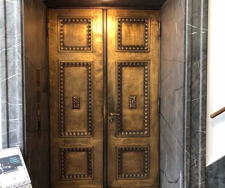 这个博物馆夹在两家餐馆中间,门很小,不容易找