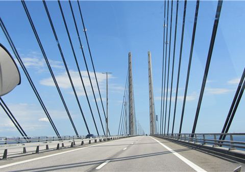 厄勒海峡大桥全长跨度16公里,是连接丹麦的哥本哈根和瑞典第三大城市马尔默的重要交通要道,是目前世界上已建成的承重量最大的斜拉索桥。