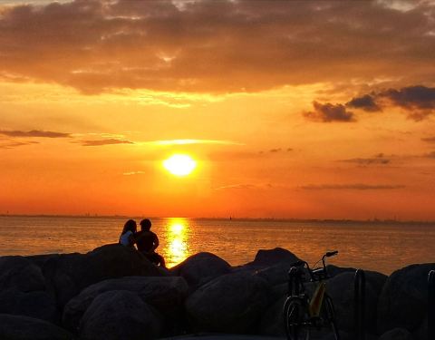 厄勒海峡大桥——横跨厄勒海峡,把丹麦首都哥本哈根与瑞典城市马尔默这两个都会区连接起来。大桥全长8公里,是世界上最繁忙的河道之一,非常的壮观,日落时站在海岸上看夕阳、厄勒跨海大桥,真的无限美。