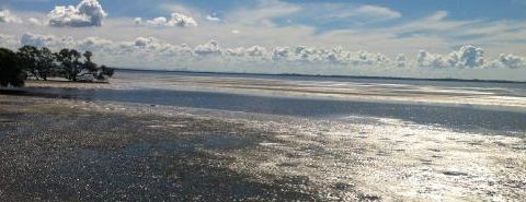 Nudgee Beach on Moreton Bay - a great wetland experience Nudgee Beach is a great little spot to visit just off the northern end of the Gateway Motorway at Brisbane and although the beach is quite small, there was great activities with paddling, fishing and as there is an off the leash dog park there, there were lots of dogs playing happily in the water. Right on Moreton Bay which is a Wetland of International Importance, there was plenty to see and do. There is a great little village at the beach with a local shop that is worth a second look. There is also a great walk up into the wetlands and although the day was hot there was a nice sea breeze blowing most of the time which made the walk quite bearable and interesting.