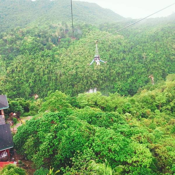 类似于 清迈 的丛林飞跃的森林滑索体验,但与丛林飞跃不同的是,刺激度稍逊,但景色更甚。因为会飞跃过两座山,速度方面也不会太过急速,所以可以在途中欣赏到壮阔的森林景观以及瀑布和溪流。 在玩飞索之前下了一...