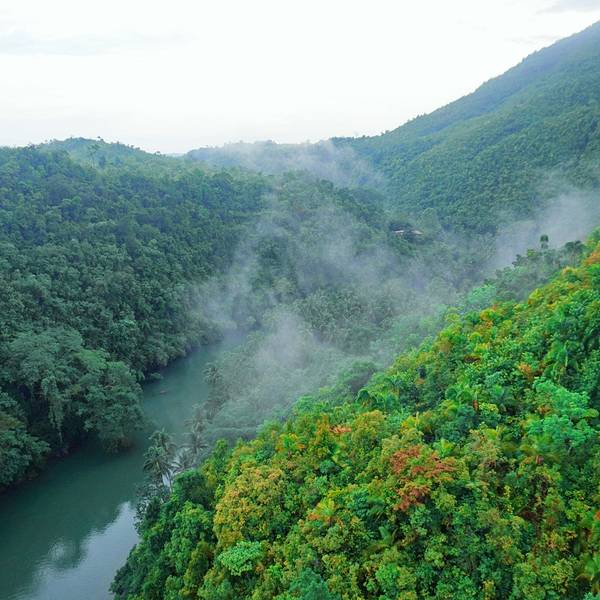 洛博克河蜿蜒曲折在热带雨林中穿行,河水碧绿。像海岛的秘境