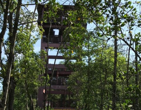 自然公园保养得很差,沿着木制的小路,周围是红树林和沼泽。许多垃圾塑料水瓶、木制托盘等都被分散在各处,外国人门票是二十一马币,而本地人只要五马币,周围没有垃圾桶,观景塔有五层。