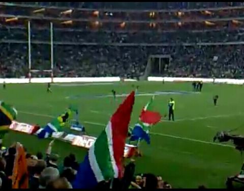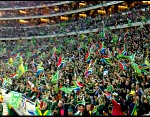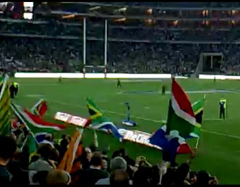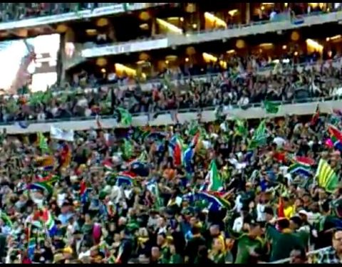 來到约翰最大最现代化的FnB体育馆,观赏一场橄榄球赛,场面壮观,球迷们的欢呼声使整个球场很有气氛。