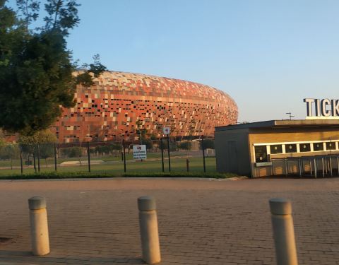 约翰内斯堡足球城体育场,又称FNB Stadium,是2010年南非世界杯的主球场,坐落于约翰内斯堡的西南部索韦托区,南非世界杯的揭幕战以及决赛都在这座非洲最大的体育场举行。能够容纳近10万人,但目前球场处于空置状态,不能入内参观,只能外观拍照留念!