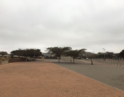 这里是南非世界杯的主办地 整个场馆占地面积非常大 整个建筑一点一点的马赛克壮外形也很有特点 周围也比较空旷 使得整体的感觉非常大气