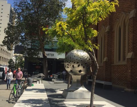 ...ting Church 闲逛时路过,在珀斯站附近,教堂边的雕塑很特别,像一粒地球在绿叶的呵护下