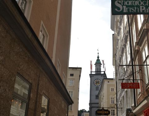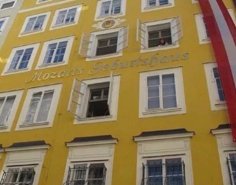 Walking in the old town, came to a stream of people very crowded place, and then almost everyone looking up at day, feel like at the heaven will fall pie, by the way, Mozart''s birthplace. Because lane is very narrow and floor is a little high, everybody has to stick his neck