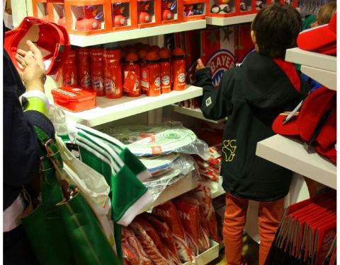 如果不看球又想要买拜仁纪念品的,无需跑去安联球场那么远。在慕尼黑火车站里、在卡尔门进去几步路的店里、在从玛利恩广场前往HB啤酒馆的路上,都有拜仁纪念品专卖店