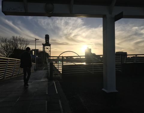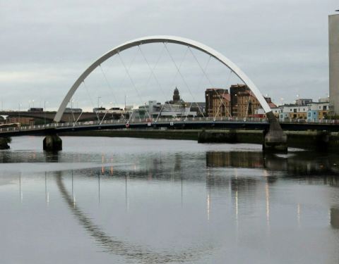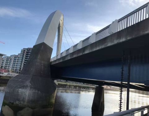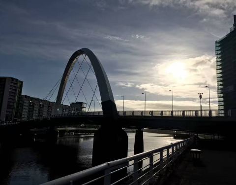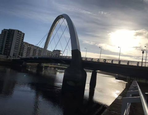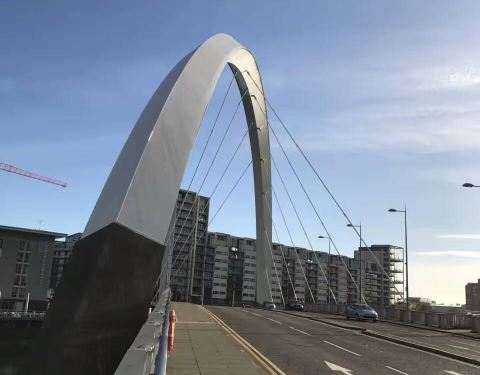 格拉斯哥新的码头复兴区内又一座桥梁,相对来源西侧,这里巨大的弧线虽然在国内桥梁同类有很多,但是在欧洲这样老牌的工业城区还是比较少的。 跨越河流的桥梁在桥梁东侧有很多包括机动车,而西侧就再也没有可以让机动车行驶的了,因此桥梁也成为了新城区联通两岸的重要交通要道
