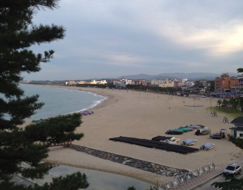 在韩国算比较大的海水浴场,海水浴场附近环境非常好,沙子比较细。