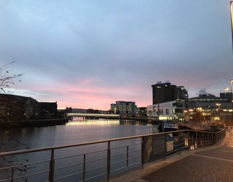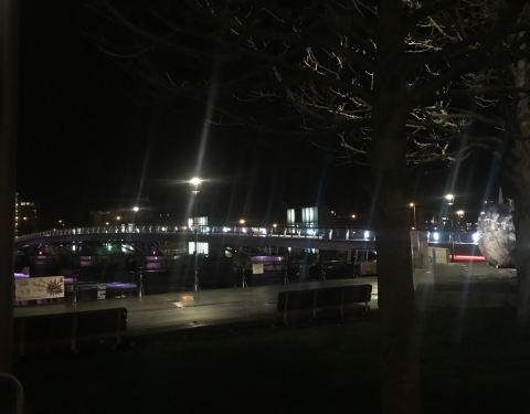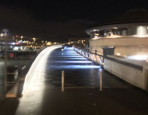 贝尔法斯特的港口区内有很多各式各样的桥,而最具特色的步行桥连接着钟塔和对面的河岸,一到晚上灯光打起并且可以变换各式各样的颜色,虽然这类样子的桥在国内很常见,但是在相对景观灯光比较昏暗的城市来说却好...