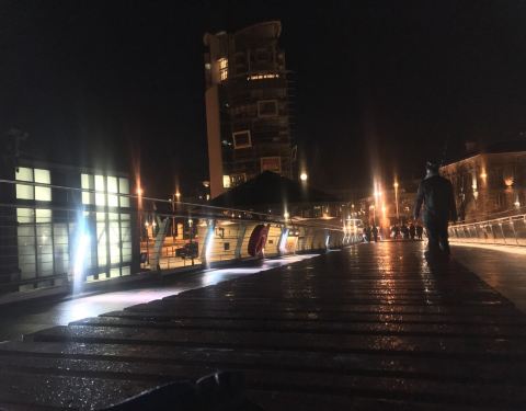 贝尔法斯特的港口区内有很多各式各样的桥,而最具特色的步行桥连接着钟塔和对面的河岸,一到晚上灯光打起并且可以变换各式各样的颜色,虽然这类样子的桥在国内很常见,但是在相对景观灯光比较昏暗的城市来说却好似光点一般与众不同