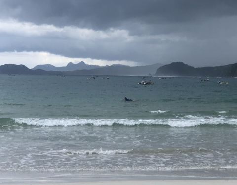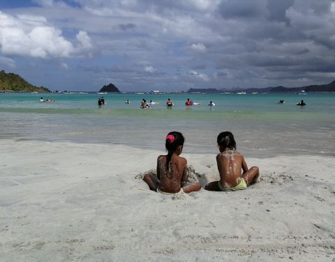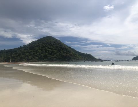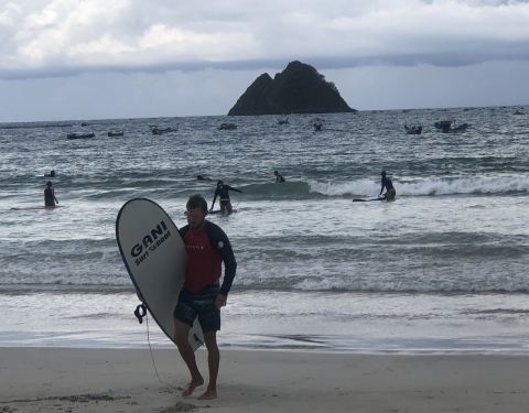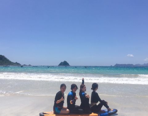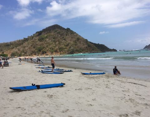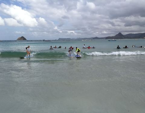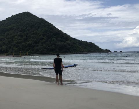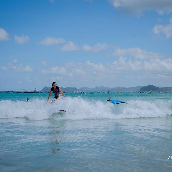 这里真的是一个很适合学冲浪的地方,广阔的海滩伴着周围小岛的美景。