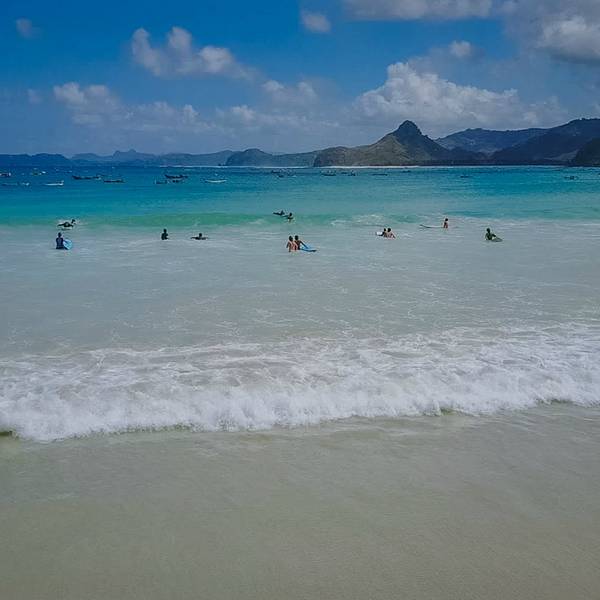 去龙目岛三次,第一次去这个海滩,这是最值得一去的海滩。视野极为宽阔,海水清澈,沙滩细腻白净,如踩在绵软的地毯上,完全没有任何搁脚的东西。我没有在其他地方见过这样的海滩。
